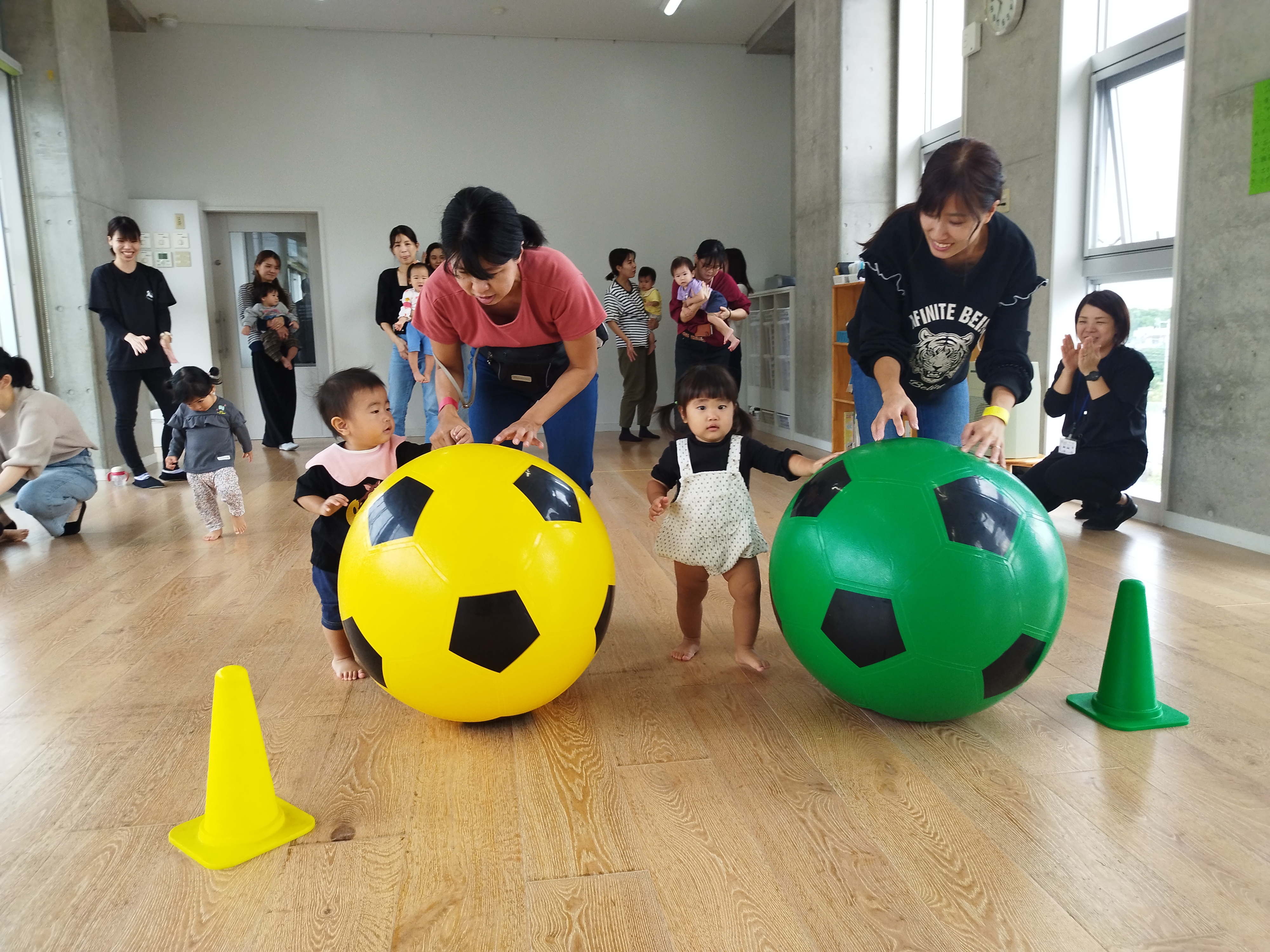 今月の子育て支援は運動遊びをしました!はじめに準備運動としてピアノの音に合わせて歩いたり、「アイアイ」をみんなで踊ってから運動遊びスタート♪