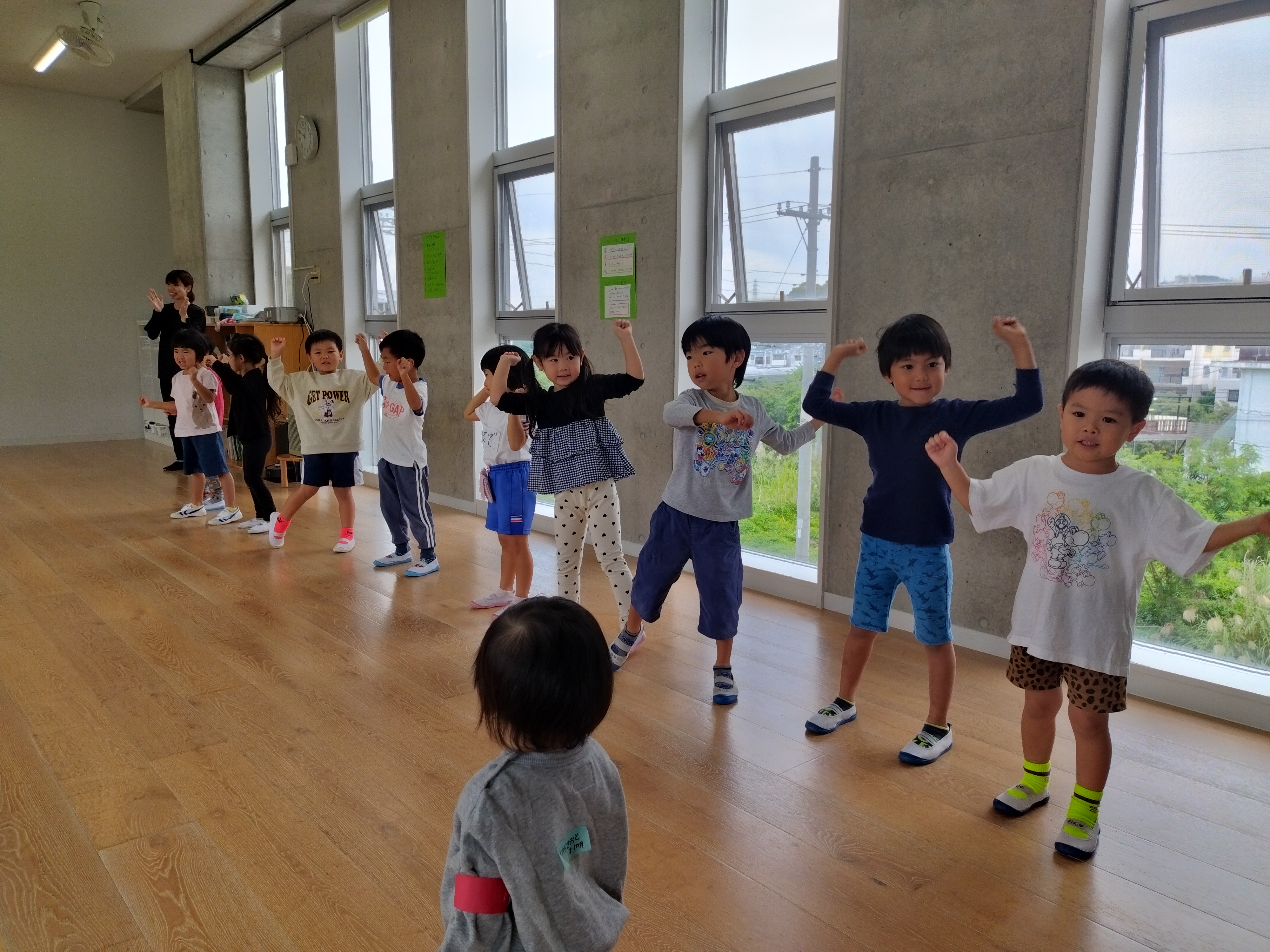ちょうちょになりきったり、ゾウさんの歌に合わせて体を揺らしたり…