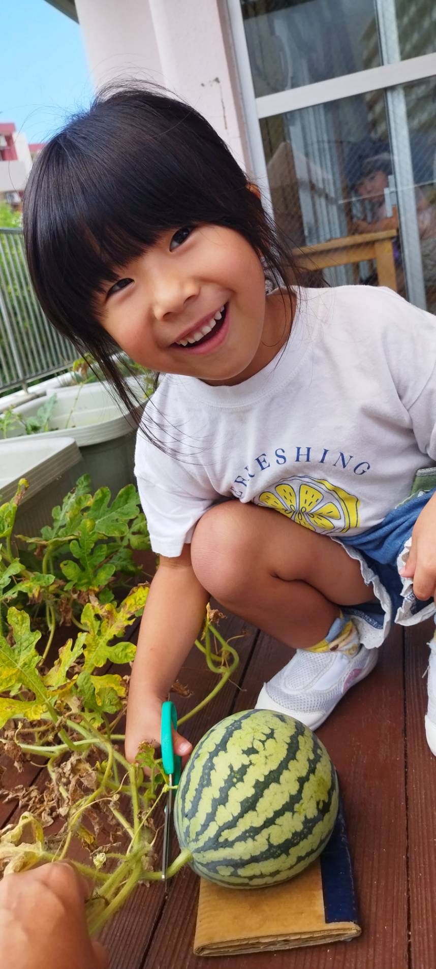 子ども達も「おいしいスイカになあれ~」と時々ツンツン触りながら水かけのお世話をやっていましたよ~