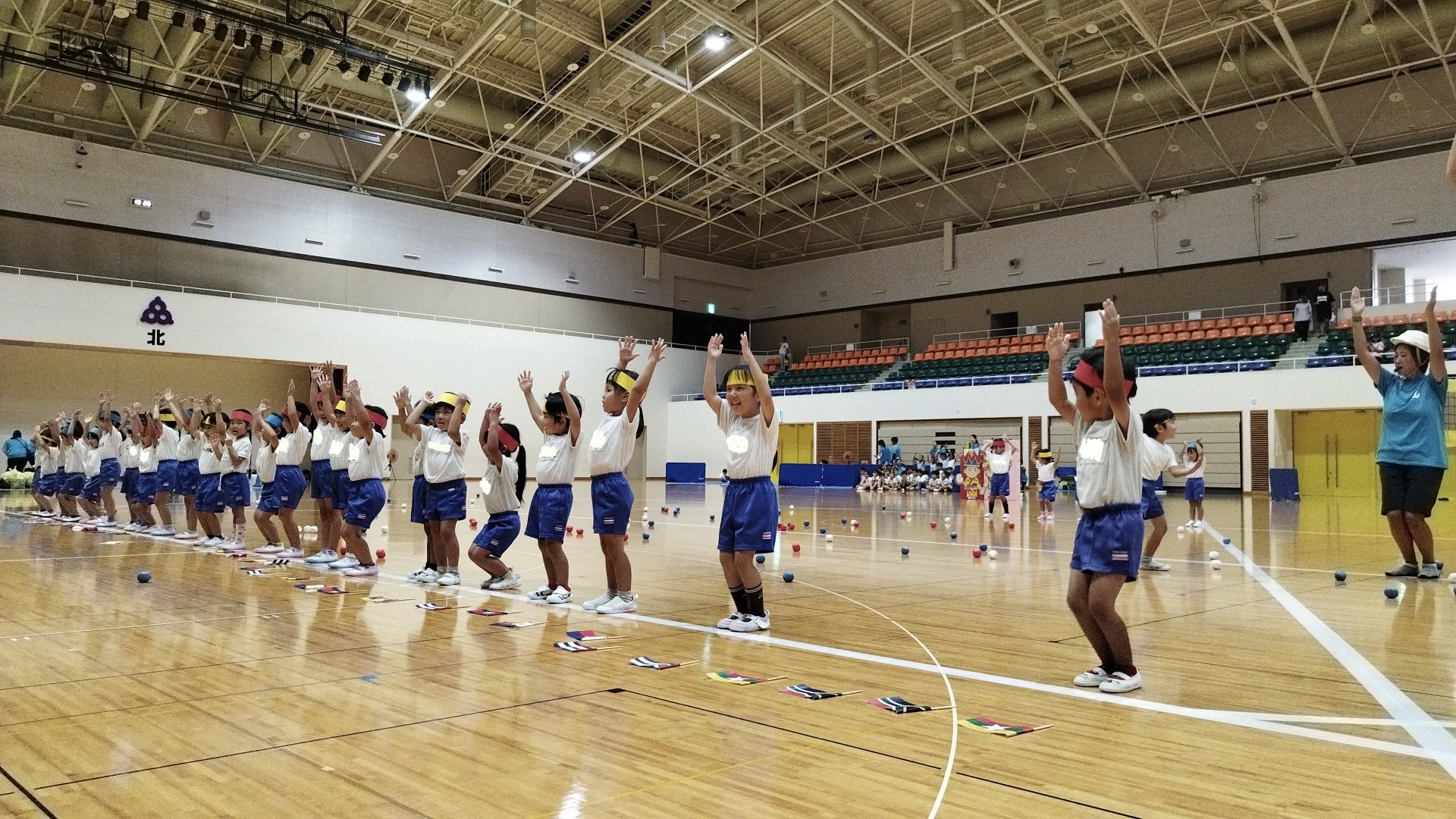 感動的なエイサー、手に汗握るリレー。元気いっぱいの万博遊戯に歌声、オリジナルティー溢れる追っかけ玉入れ、先生と保護者で競う障害物競争。