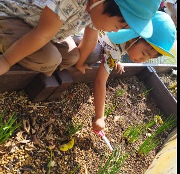 先日、人参とじゃがいも植えをしました。初めて見る芽が出ているじゃがいもに「うわ~」「すごいね~」と興味津々!恐る恐るそ~っと触る子もいましたよ~。人参の種は、風に飛ばされないように優しく土の中に埋めました。看板作りにも気合いが入っているぞう組さんでした!これから水やりなどのお世話がんばろうね☆