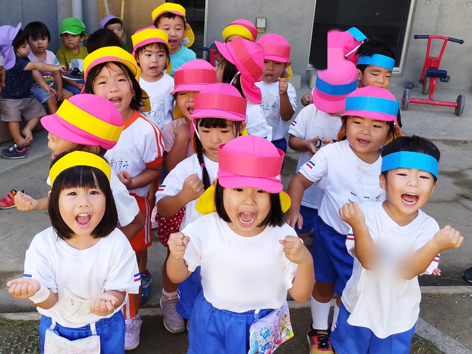 10日(木)にひよこ組さん、うさぎ組さん、くま組さんのミニ運動会がありました。きりん組さんは応援団として参加しました。