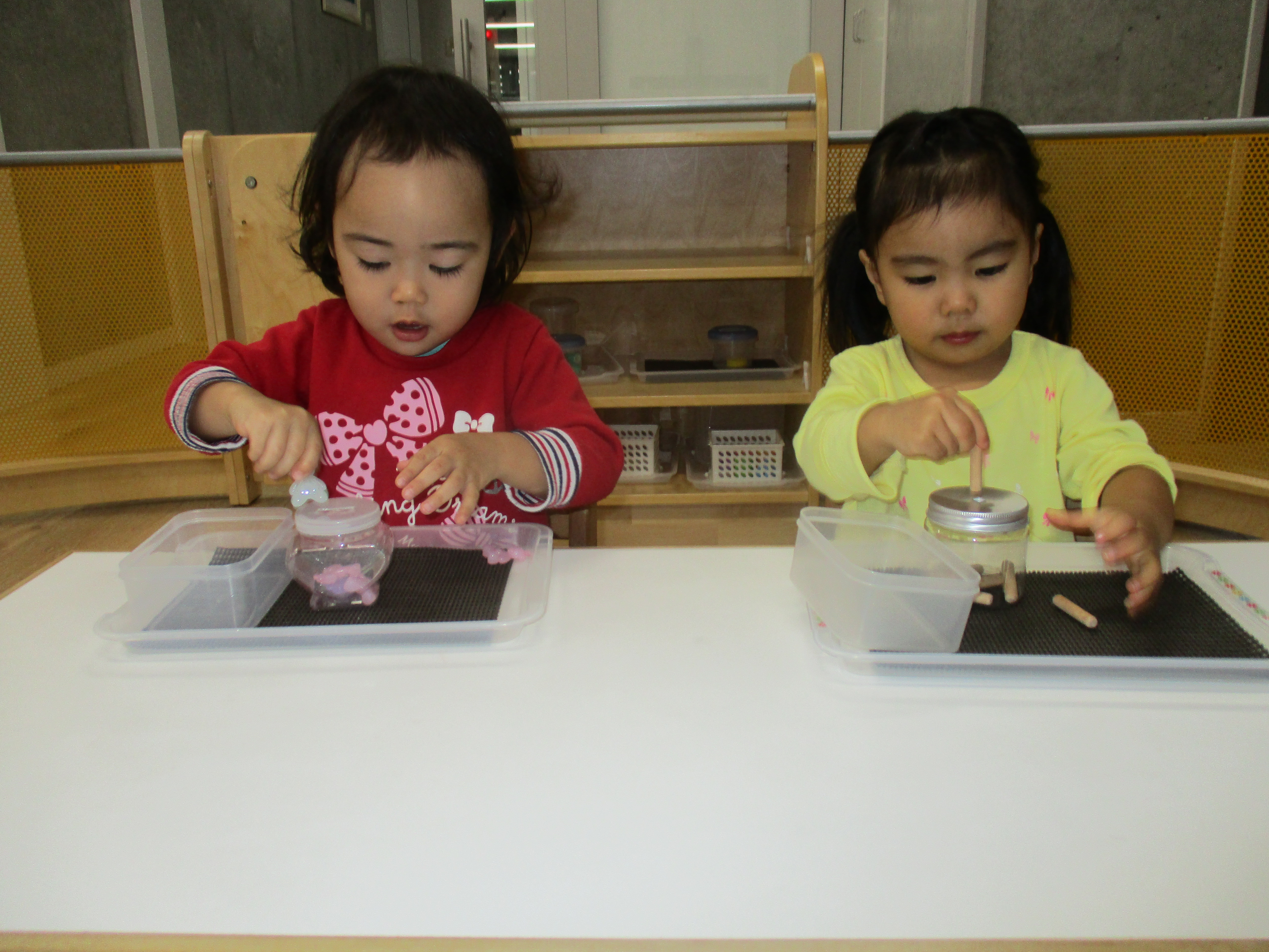 ふきごまは前にやった事があるので全員回すことができていました。今回初めて糸ひきごまに挑戦し、こまに糸を巻く事が難しく一人では出来なかったので保育士が一緒に糸を巻きを手伝い、糸引きは子ども達にやってもらいました。何回か挑戦しこまがクルクルと回ると「やった~」とガッツポーズをして大喜びしていましたよ!!