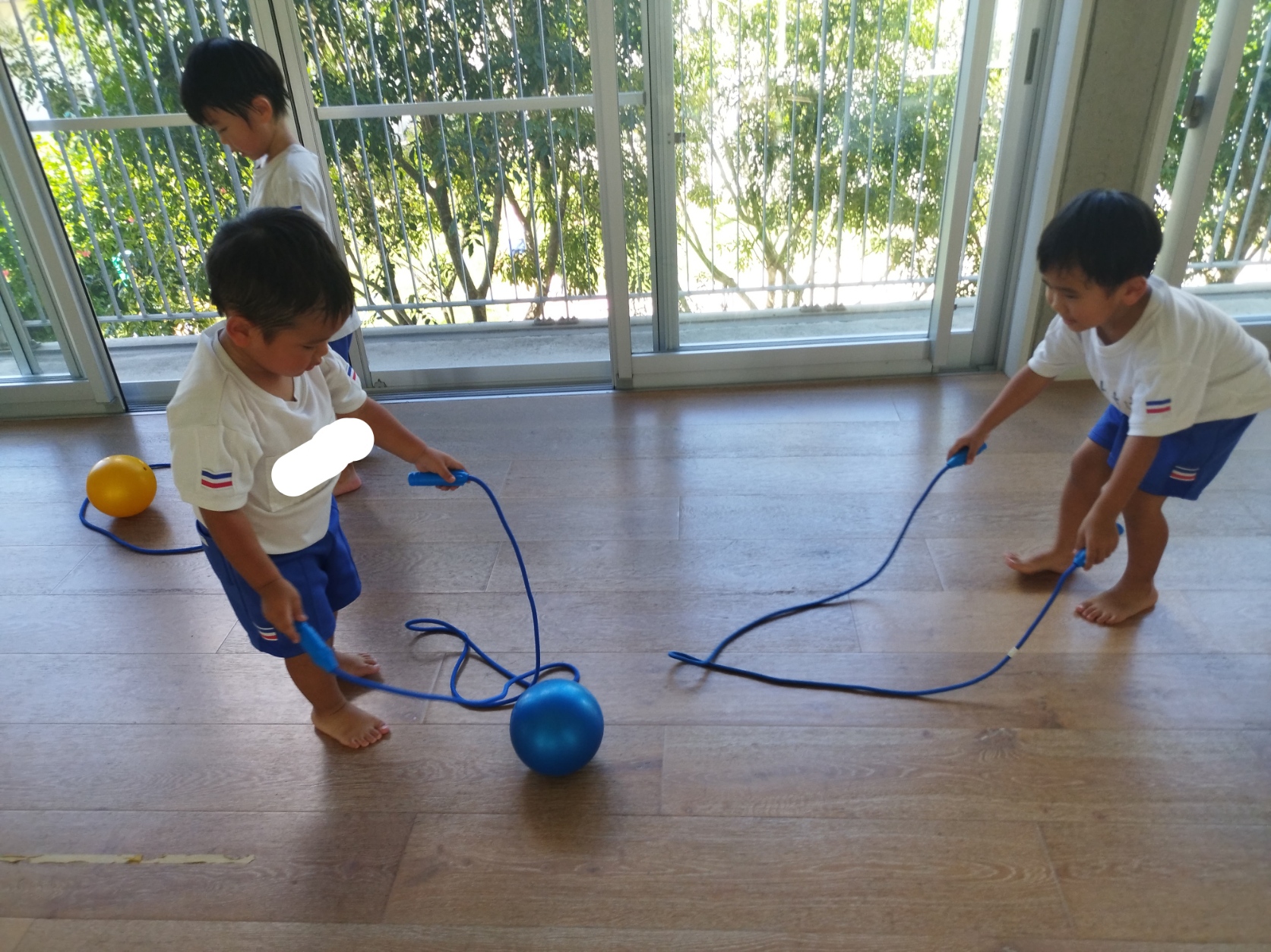 フラフープをつなげて両足ジャンプをしたりといろいろな遊びを楽しんでいましたよ♪