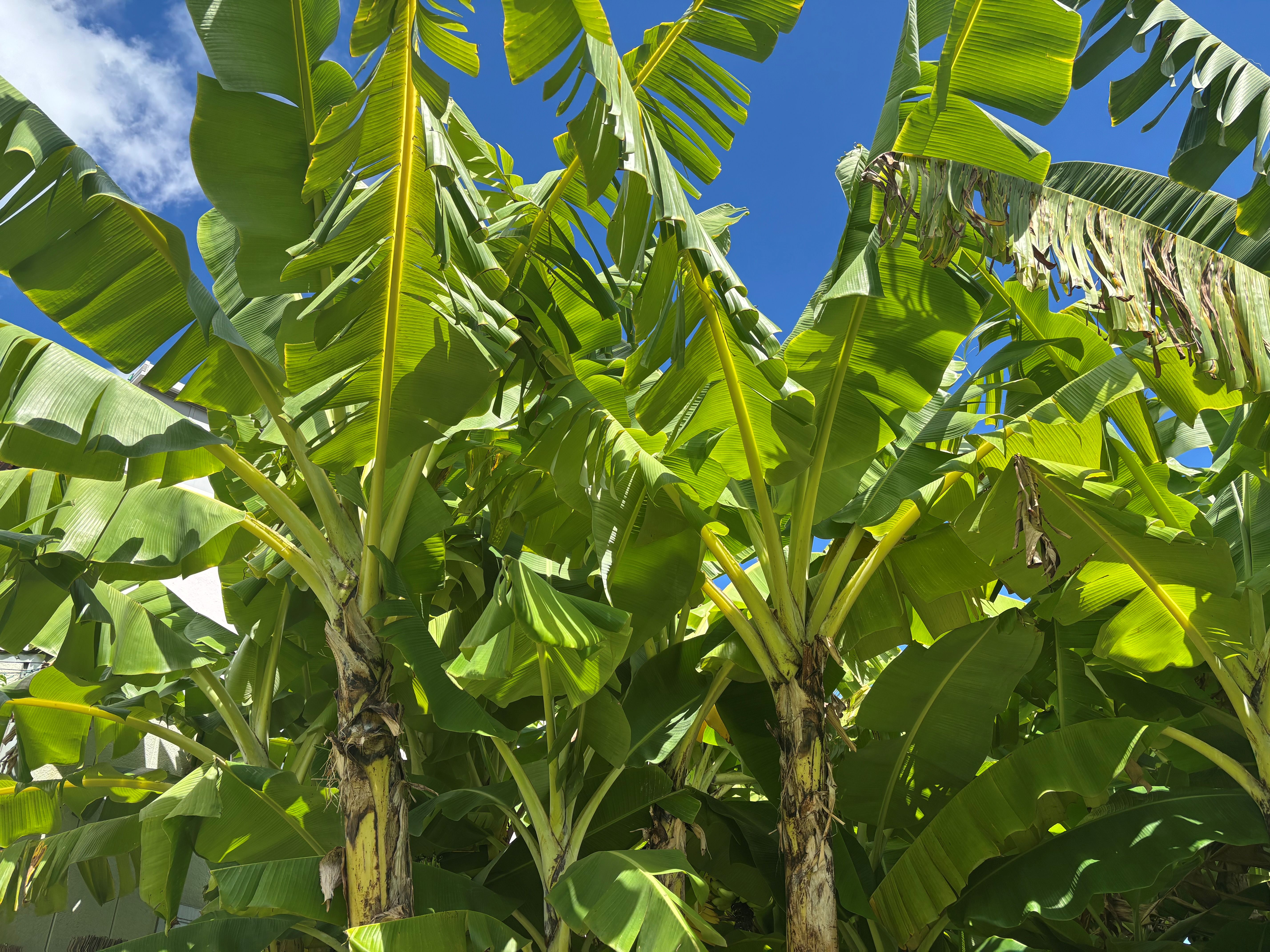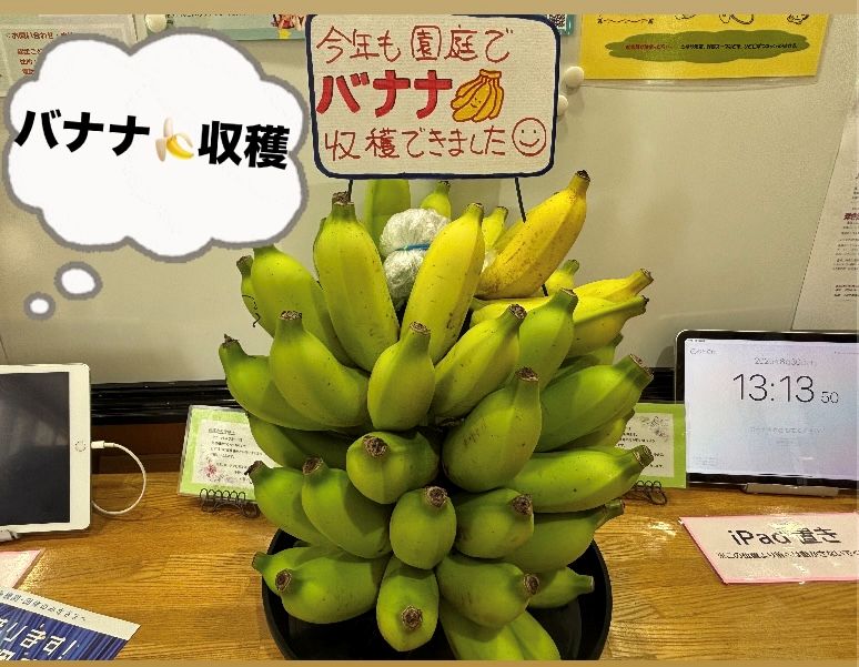 園庭の木に島バナナがたくさん実りました。沖縄の日差しを浴びてとても甘い島バナナでした!おやつに美味しくいただきました(*^-^*