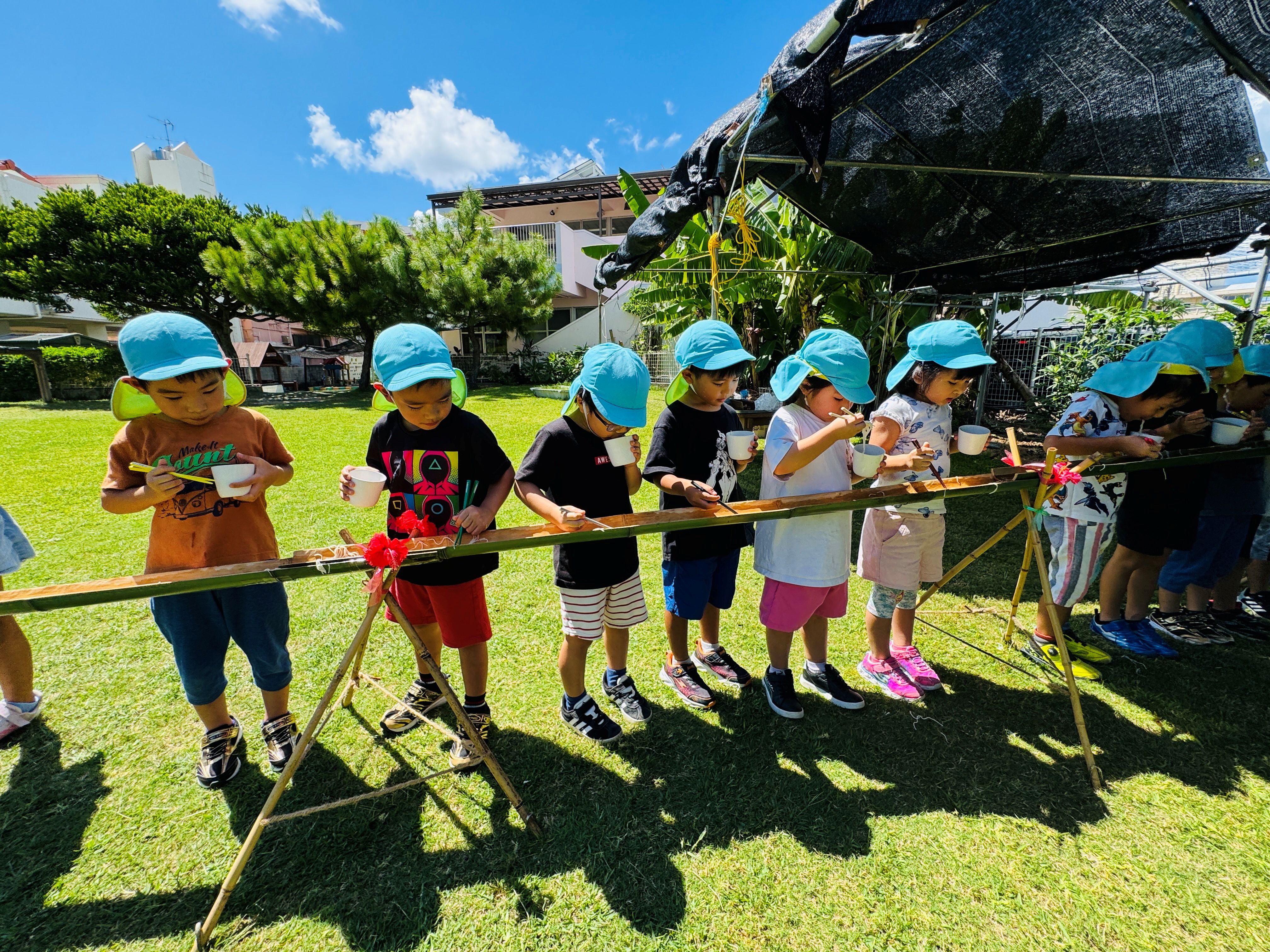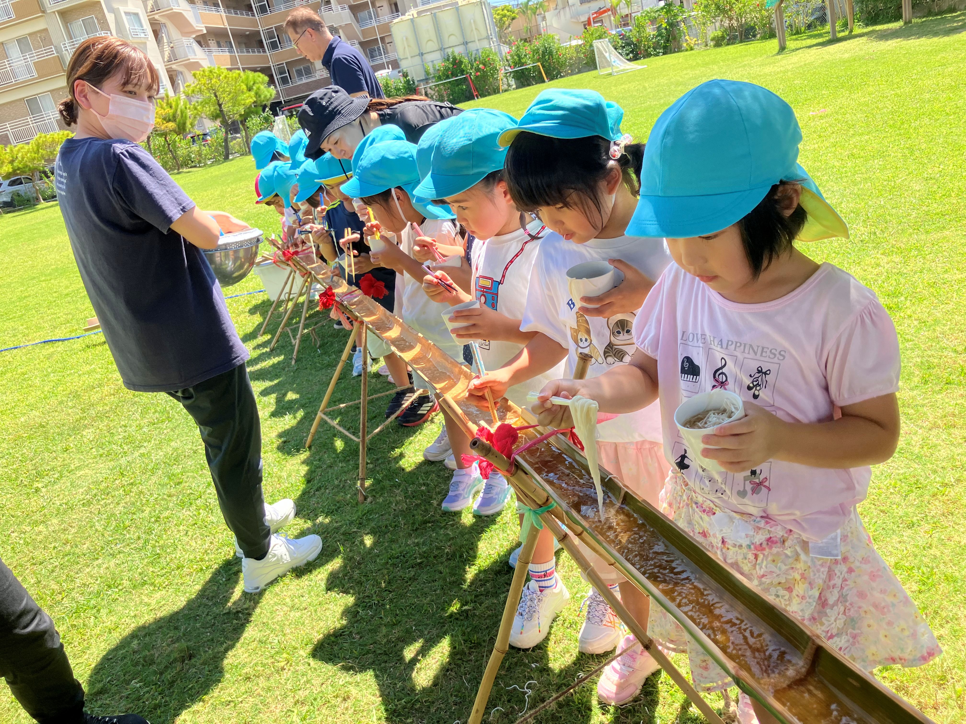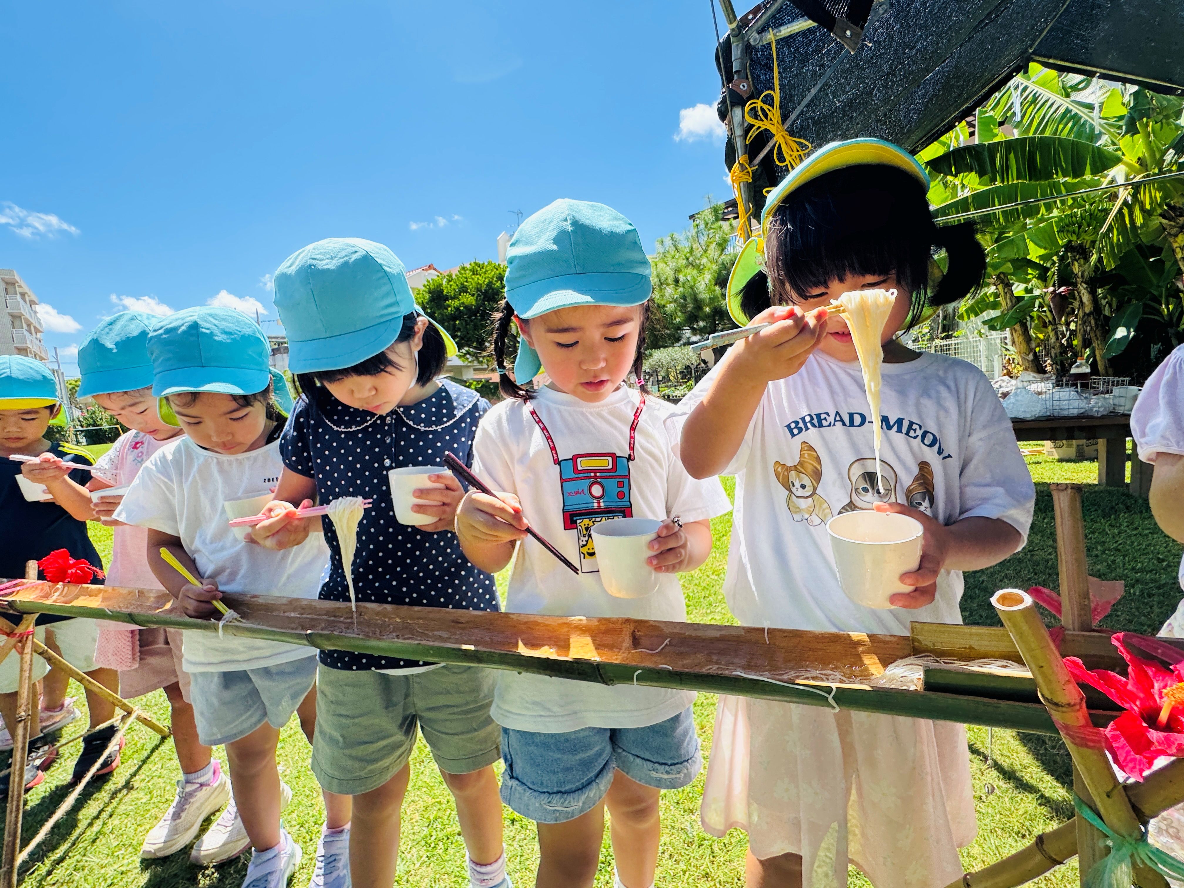 みんな箸さばきも上手になり、流れてくる冷たいそうめんを上手に挟みすくい上げて(GET!)満足した表情でほおばっていましたよ(*^-^*)