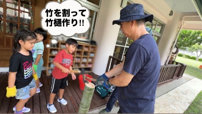 後日、なんと!!山で竹を採ってきてくれた園長先生!!