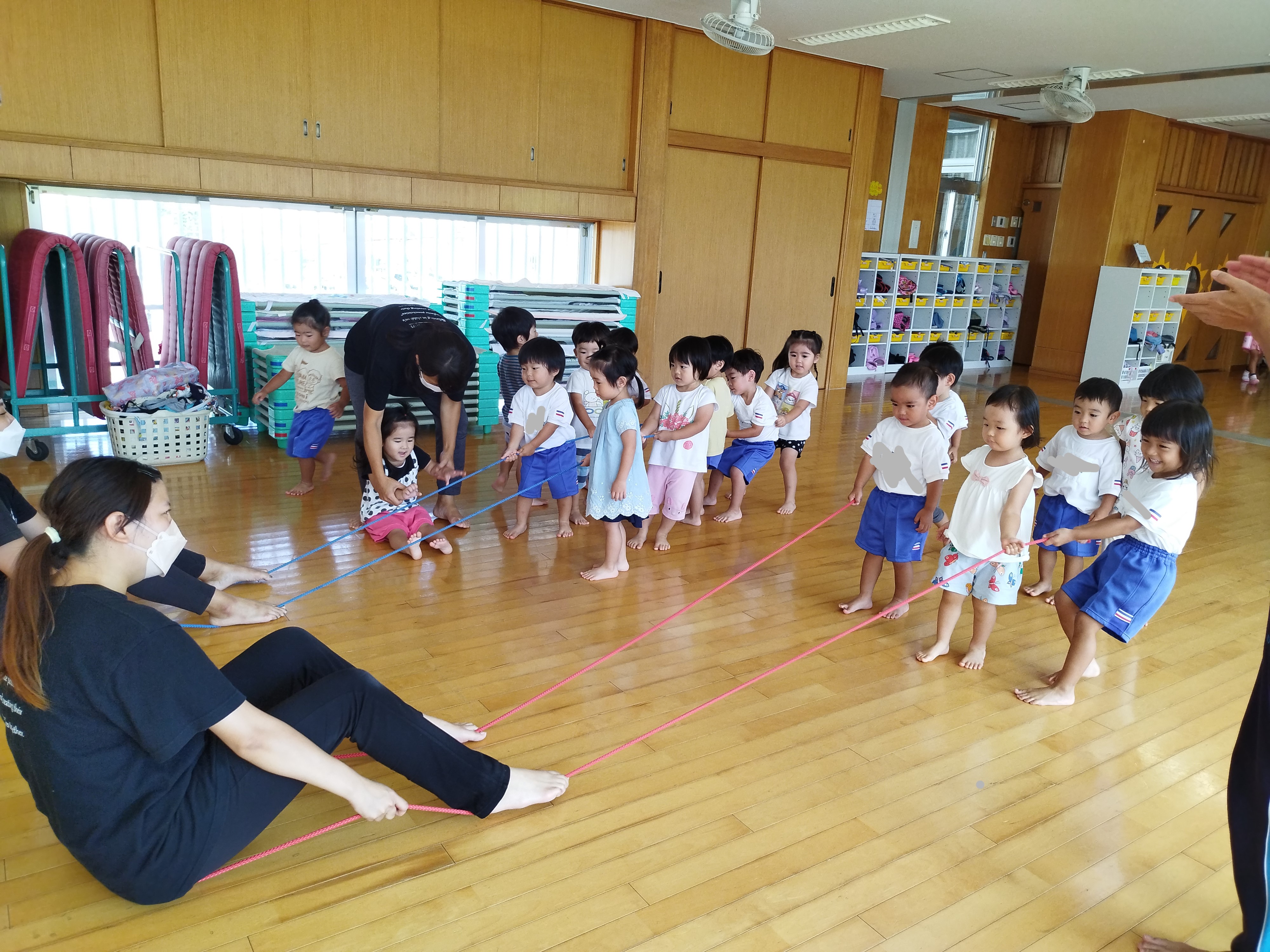最近うさぎ組さんではミニ運動会に向けて練習をしています。縄跳びを使い上手に握りピッピ!さん・し‼と元気な声を出して行進していますよ♪