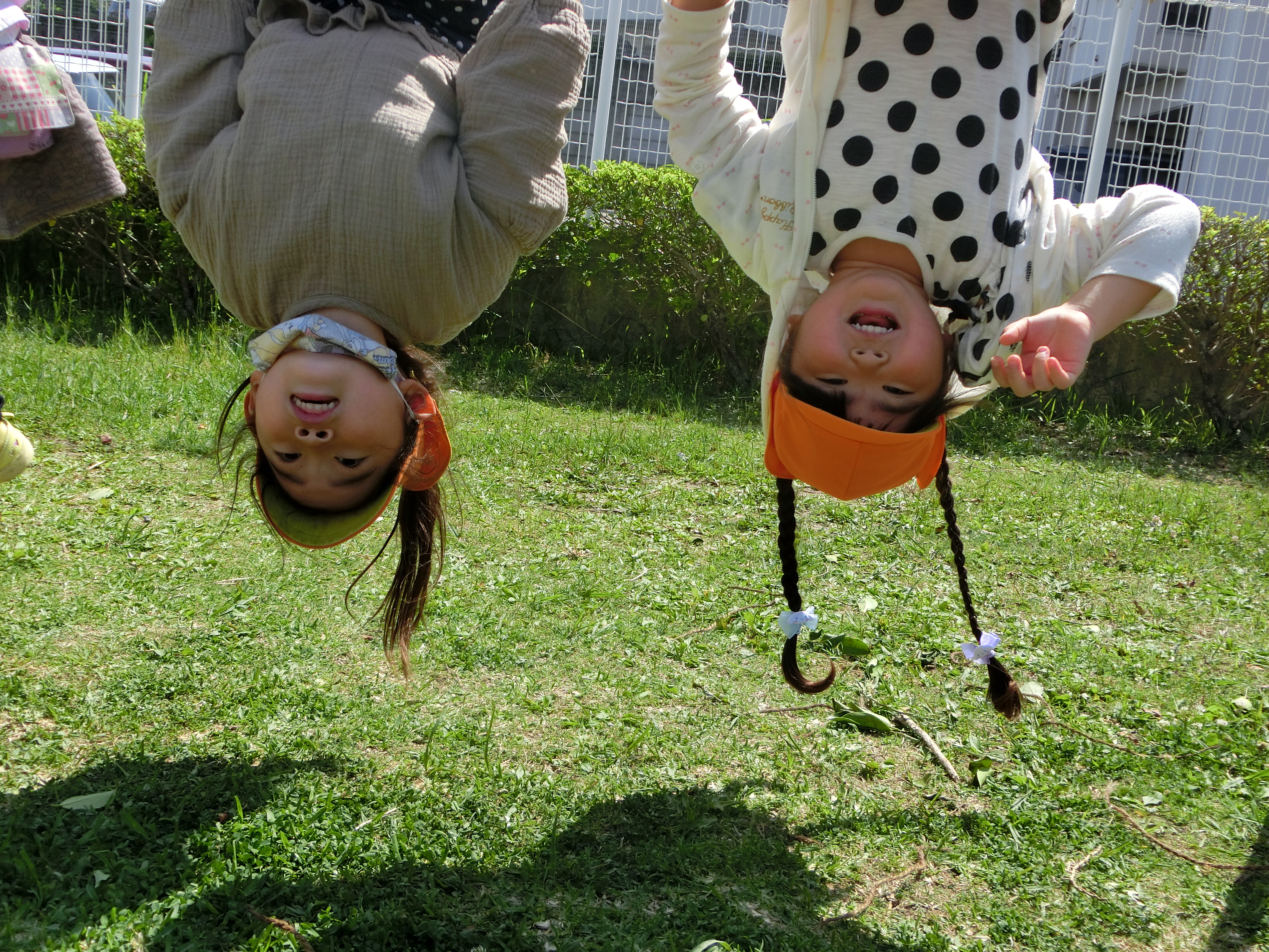 ゴールデンウィークに園長先生達が園庭のお山にきれいな芝生を敷いてくれましたーー!!くまぐみのお友だちは芝生の感触がお気に入り♫