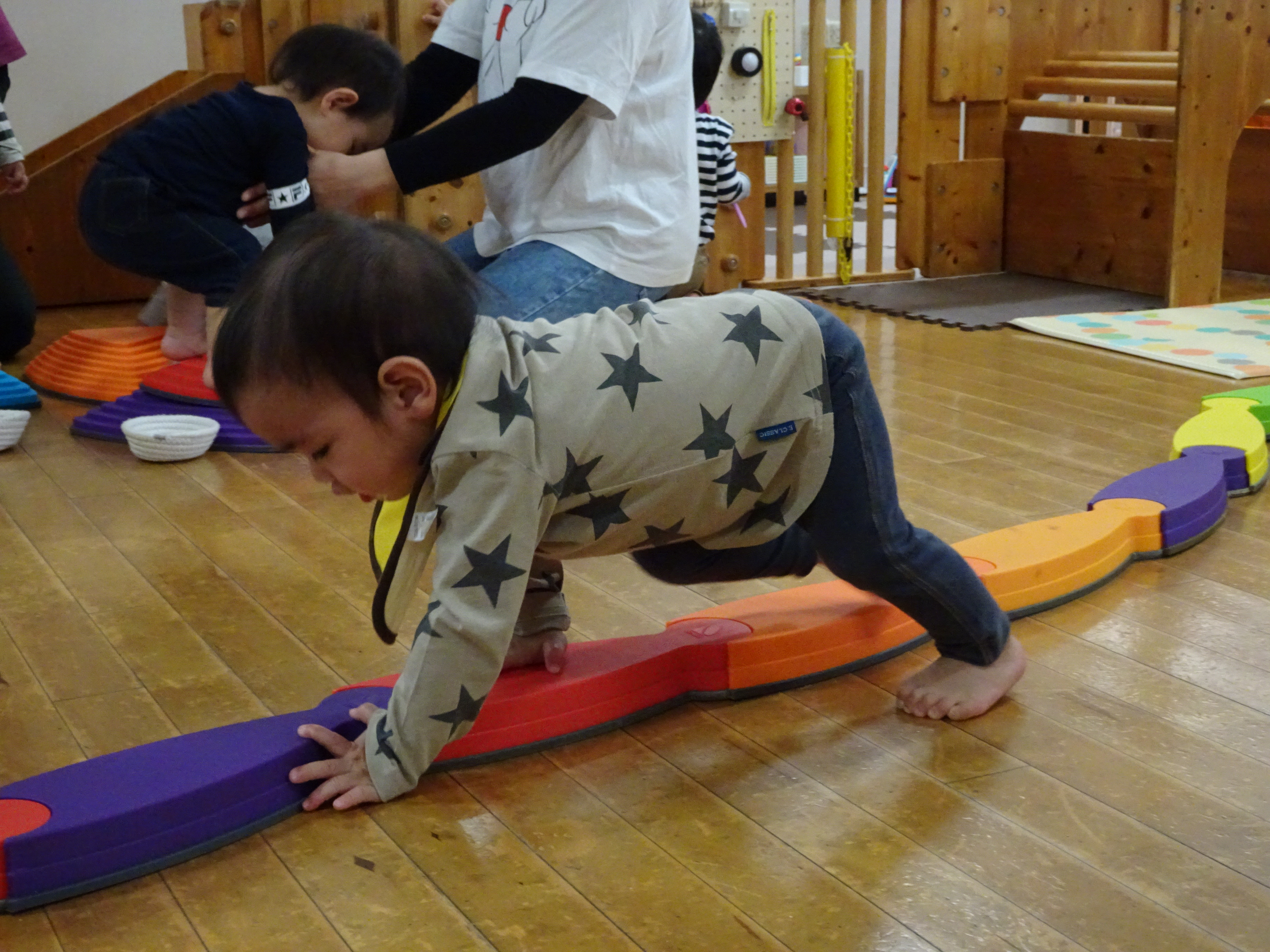 今日は巧技台をしました!!運動遊びが大好きなひよこ組さん☆今日ははしごに挑戦!!