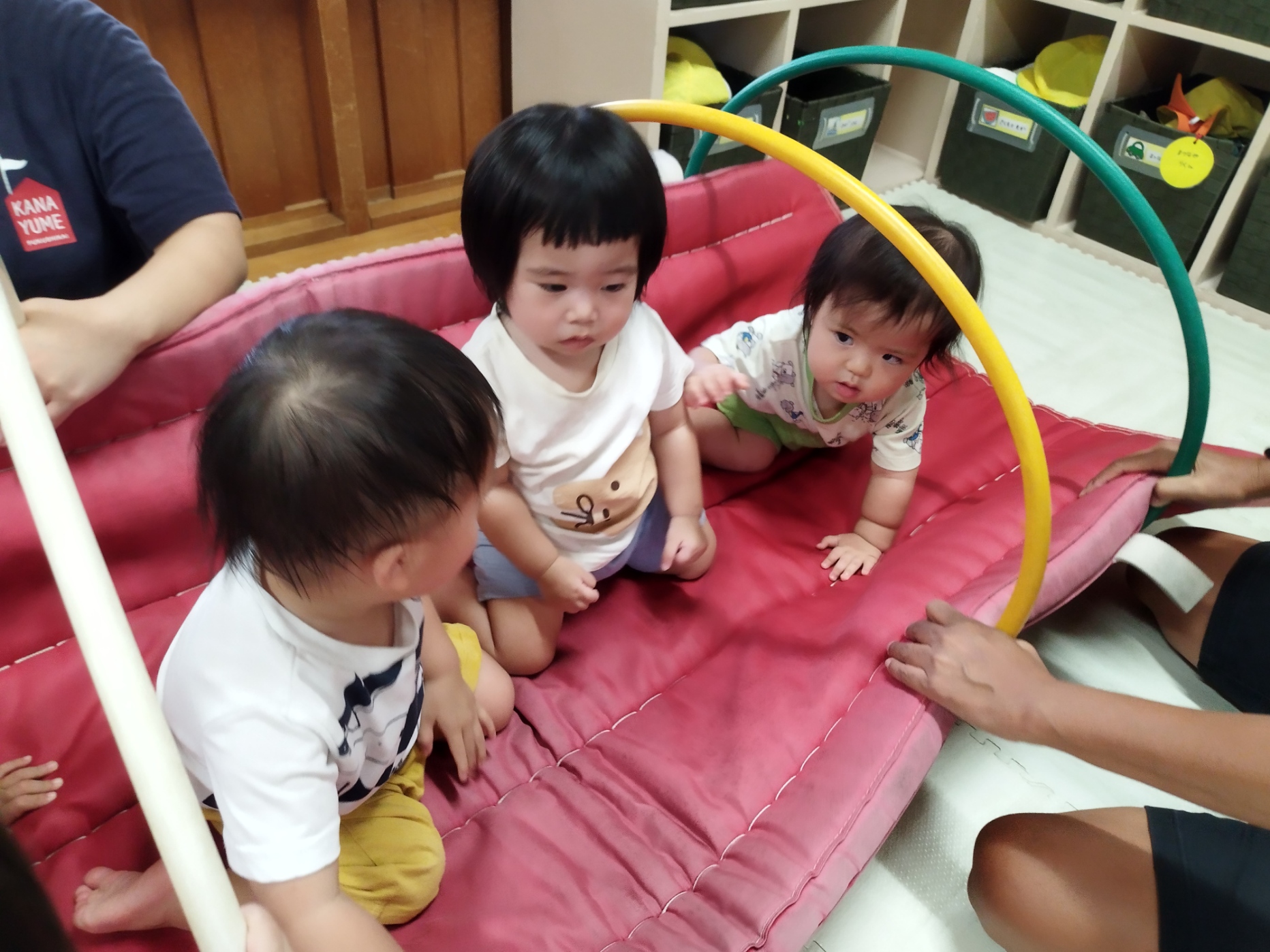 以前は人見知りしていたお友達もだいぶ慣れてきて、帰る時には何度もバイバイ~と笑顔でタッチする姿は、とても可愛くてこちらもうれしく癒されました(*^-^*)