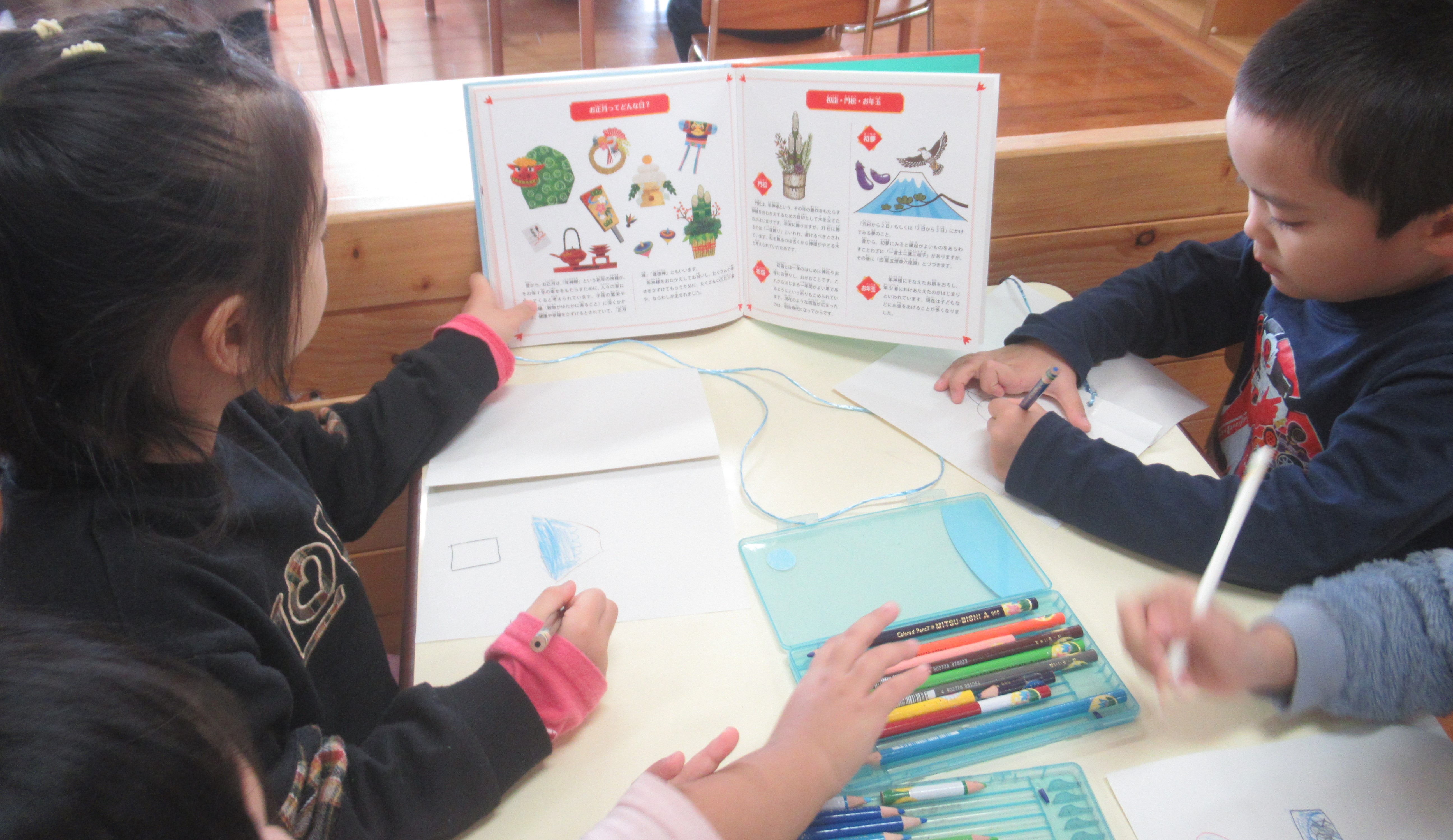 最近、お正月遊びに夢中になお友だちが増えてきています~たこあげ作りをしたり、こまやけん玉・あやとり等お正月遊びを楽しんでいます。