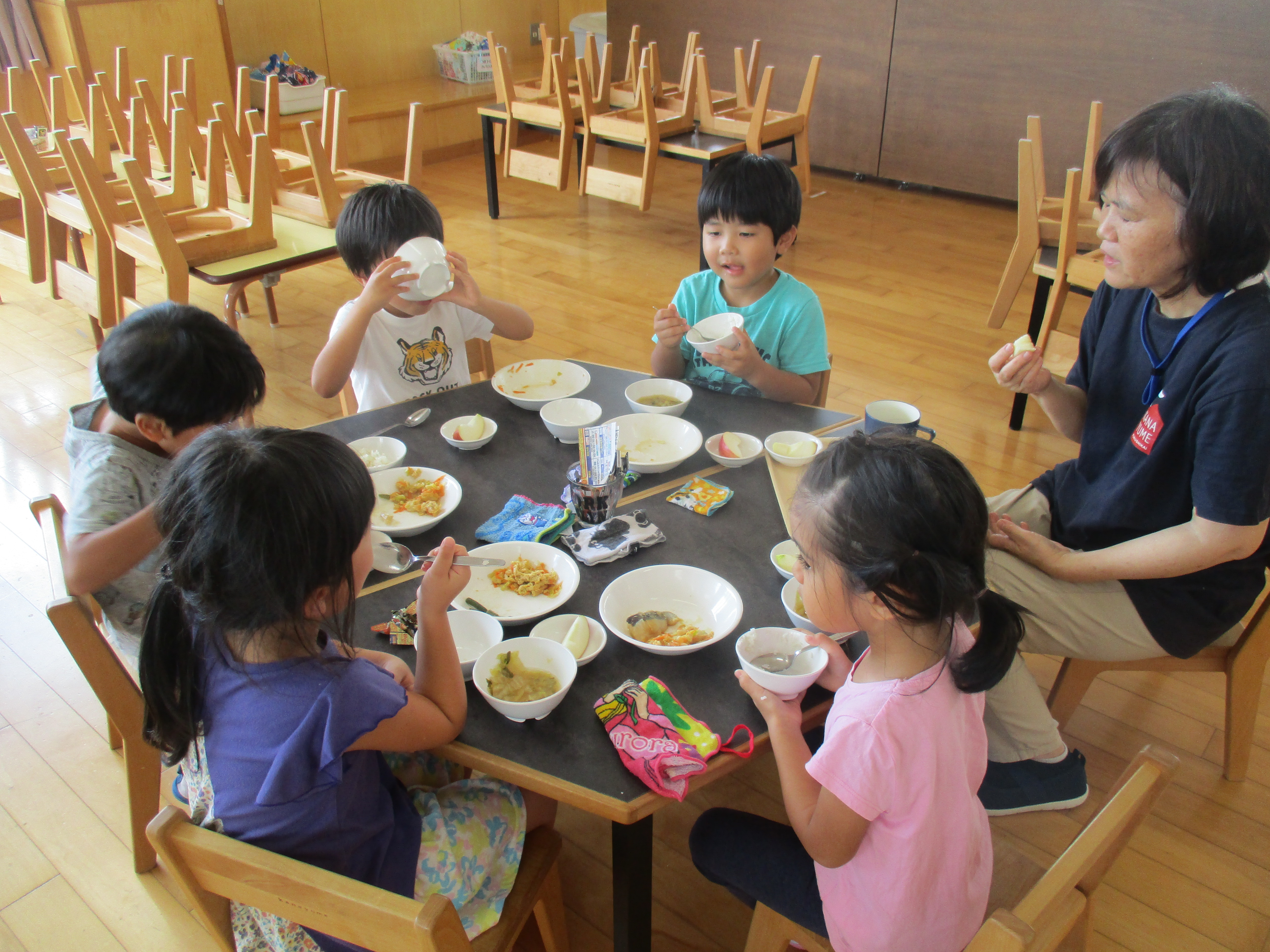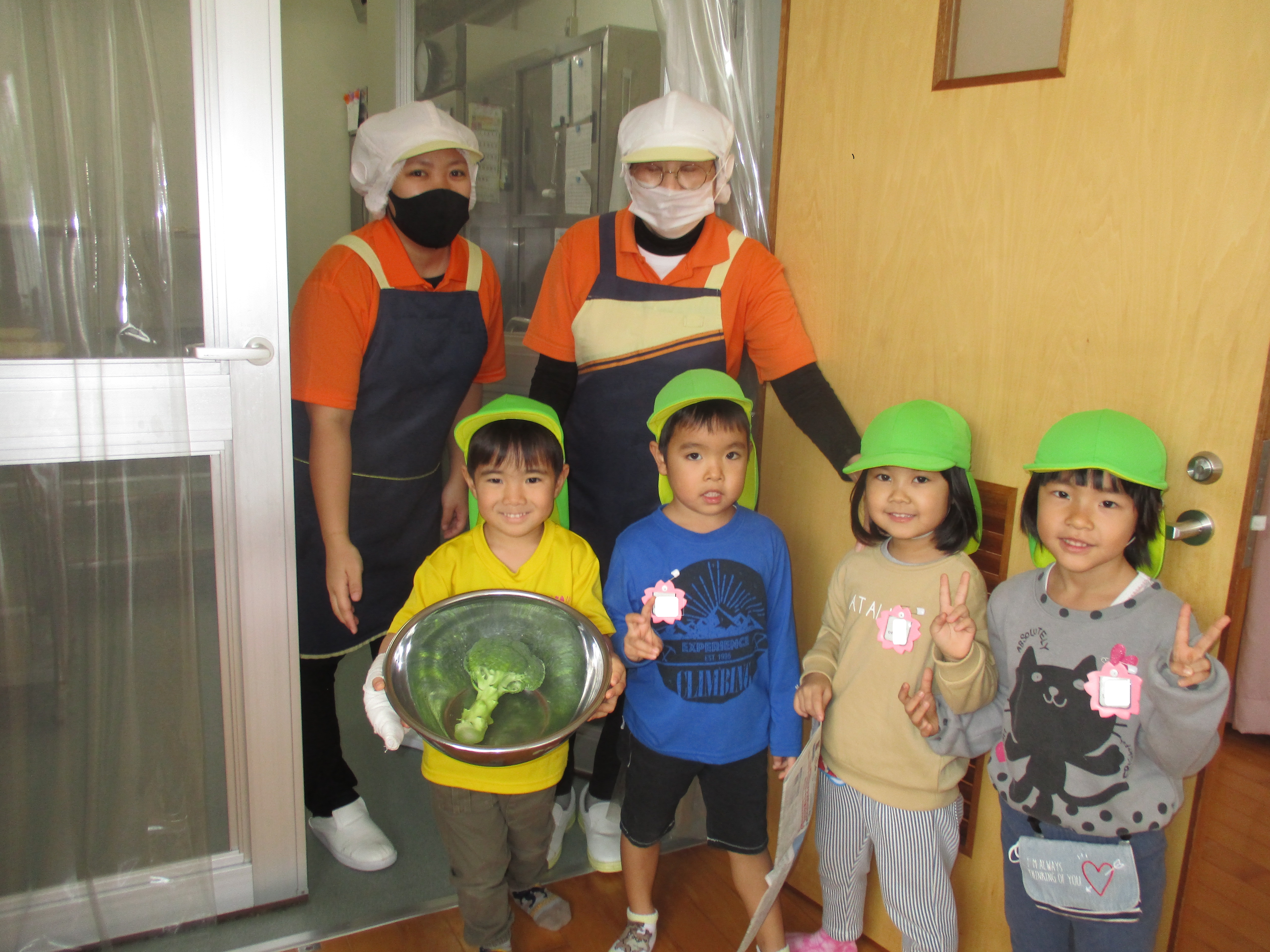 収穫したお野菜は調理場さんに持って行き、明日の給食に出てくるのを楽しみにしている子どもたちです。