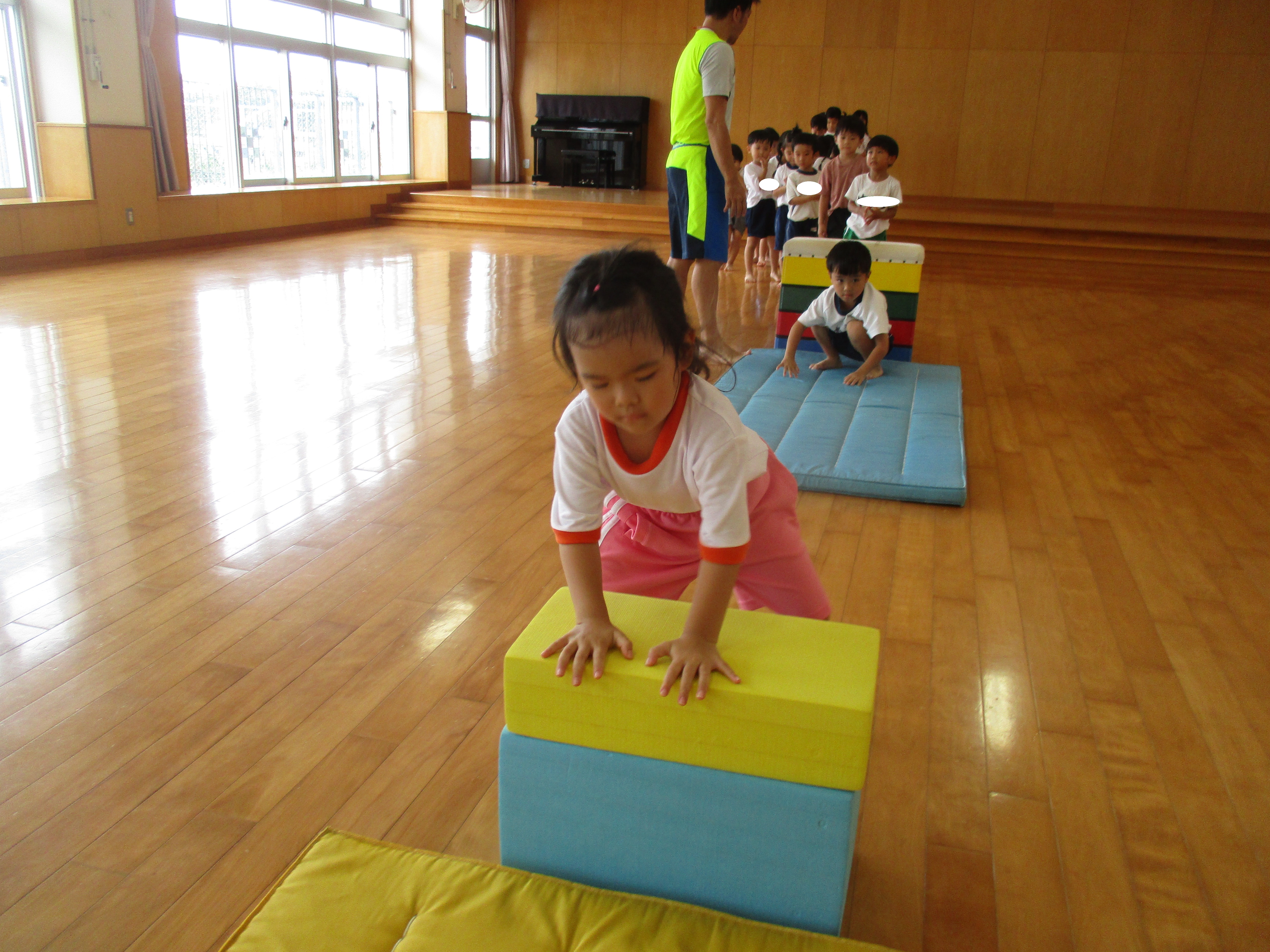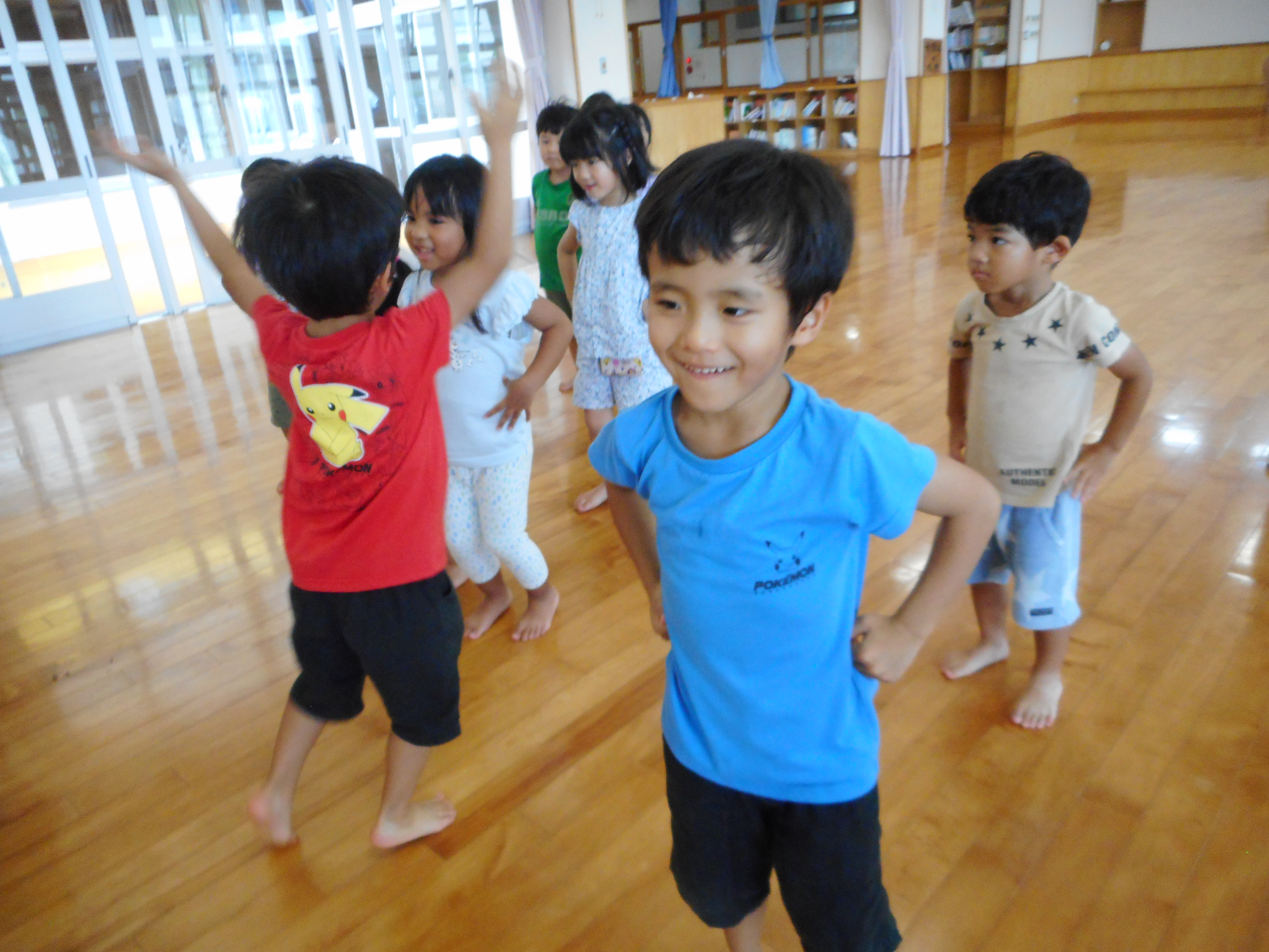 フラフープでは、腰や手でも上手に回す子もいます!何度も繰り返し一生懸命挑戦する子ども達でした♪