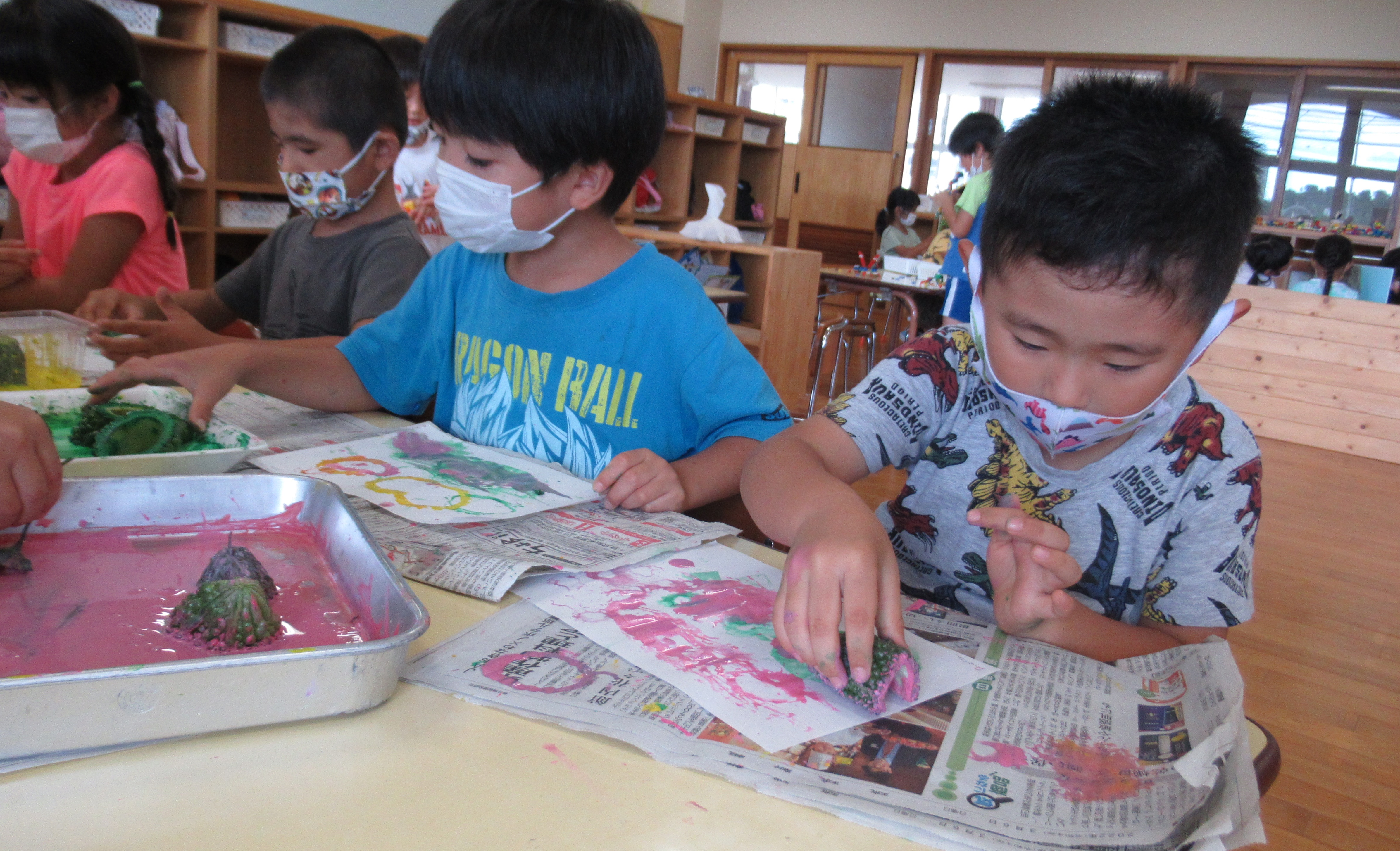 おままごとや教具遊びでもお人形さんの洋服やエプロンを畳んだりと「たたみっこ」遊びに夢中の子ども達です。「先生みて~たためたよ」と嬉しそうに教えてくれましたよ。