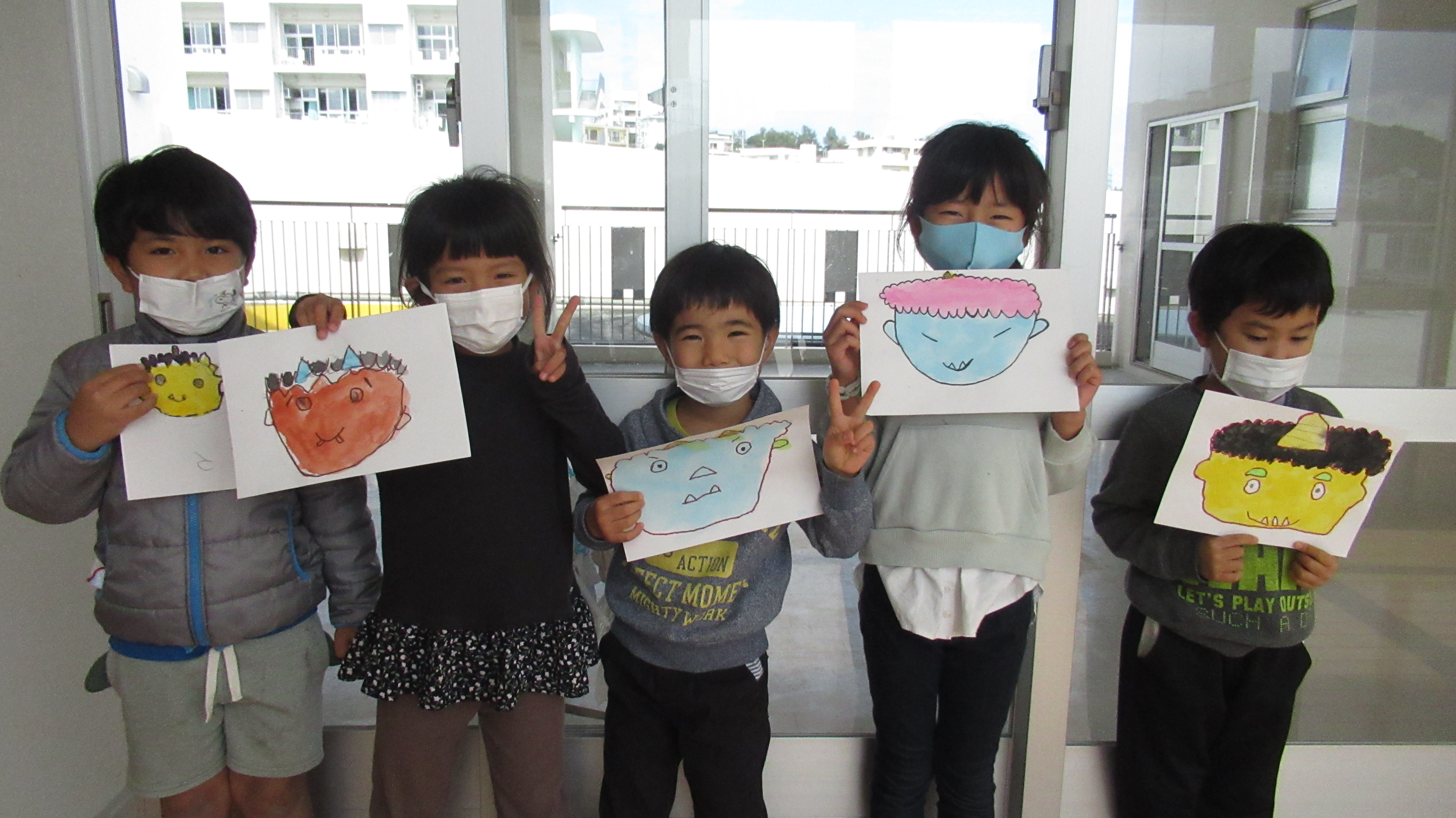 4月からの思い出の作品を振り返り「七夕のお願い事こんなお願い事だった♪」「かぶ収穫したよね」等、沢山の思い出がよみがえり子ども達は笑顔でいっぱい♪絵が上手に描けるようになったことにも気付きとても嬉しそう☆