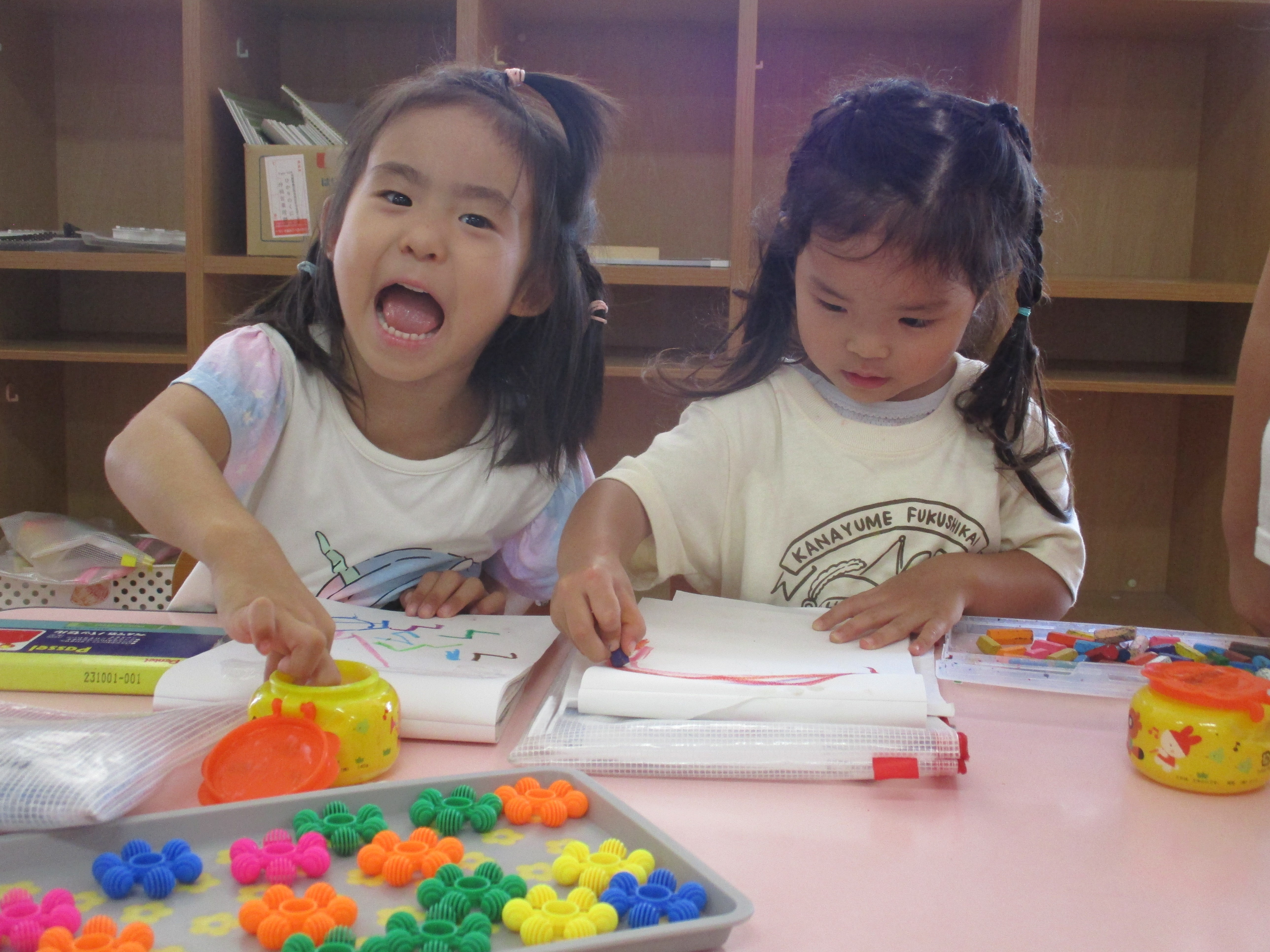 その後は、室内で国旗の塗り絵やお絵描き夢中なつきぐみさんでした~