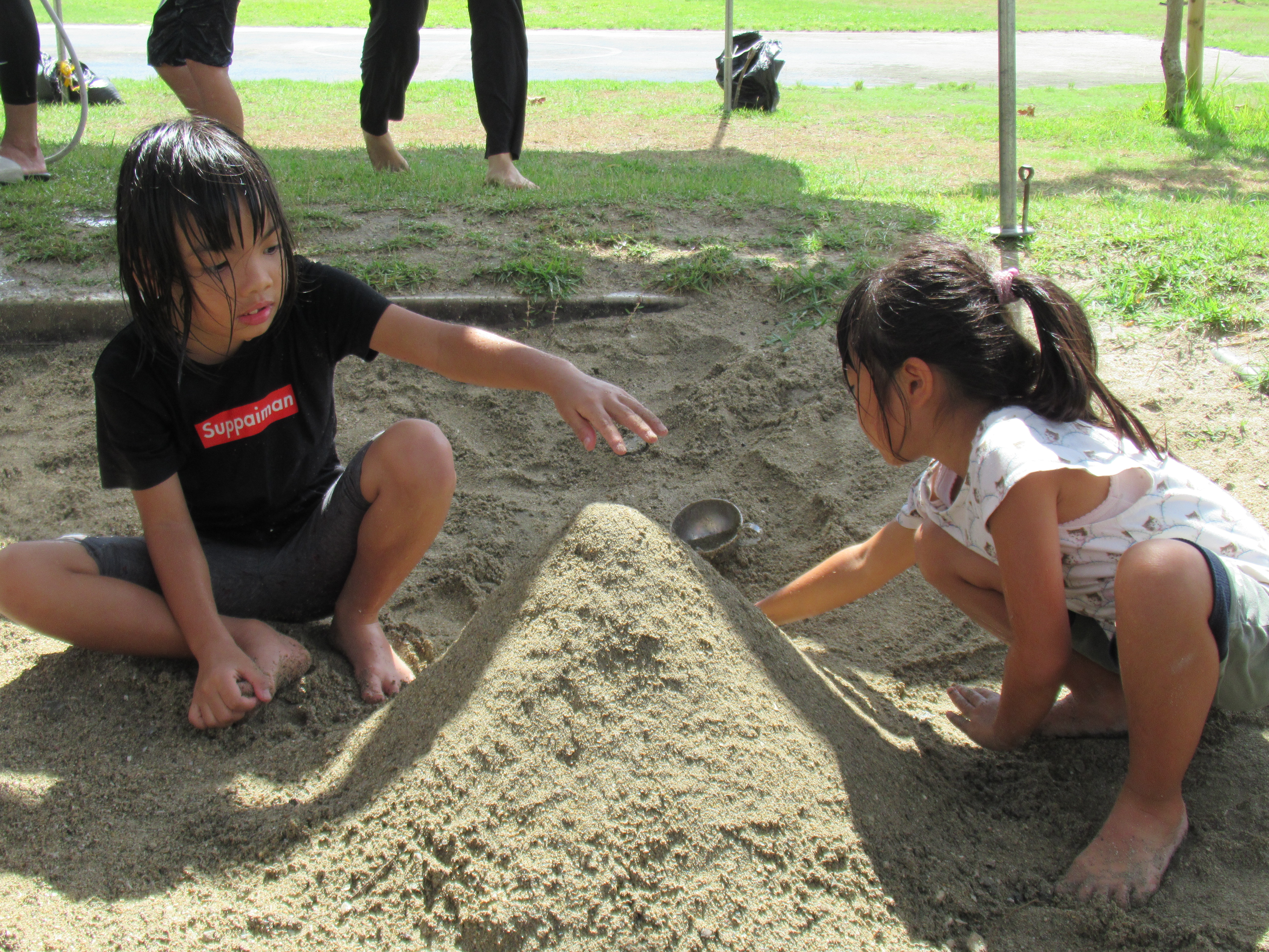今日は、今年最後の水遊びでした。1号さんも昨日から登園していて、久しぶりにみんなで水遊びを楽しみました。子ども達もとっても楽しみにしていて、はじまる前からルンルンな姿が見られました。「今日も水鉄砲で水かけるぞ~」とお友達にお話をしていたり、「○○先生にもかけよ~」と子ども達で話をしている姿も見られました。沢山水鉄砲やシャボン玉、パタパタプールで楽しみました。また、来年も楽しみにして待っていようね~